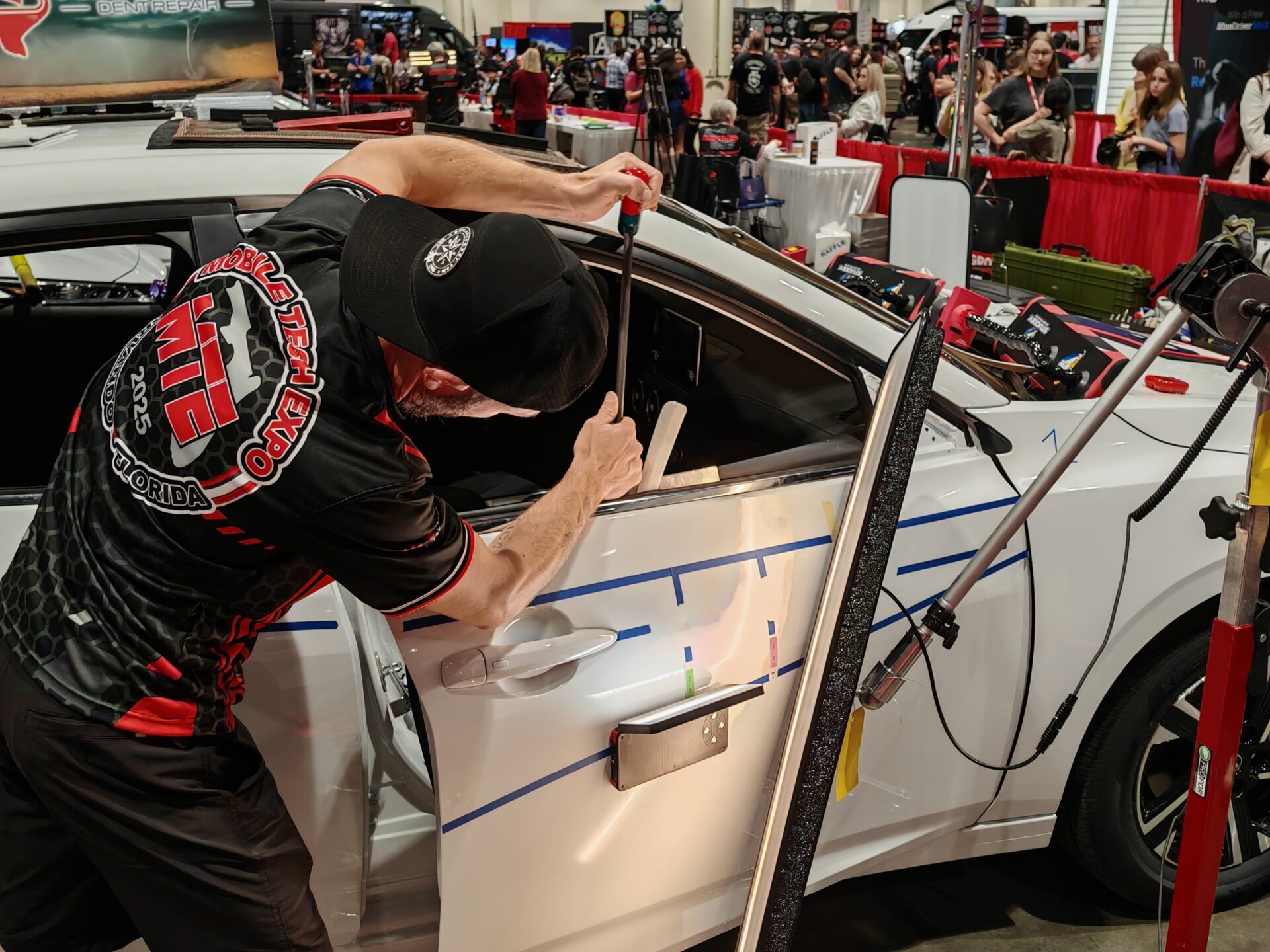 Na veletrhu Mobile Tech Expo (MTE) se konala soutěž v odstraňování promáčklin bez použití laku (PDR) nazvaná „Dent Olympics“.